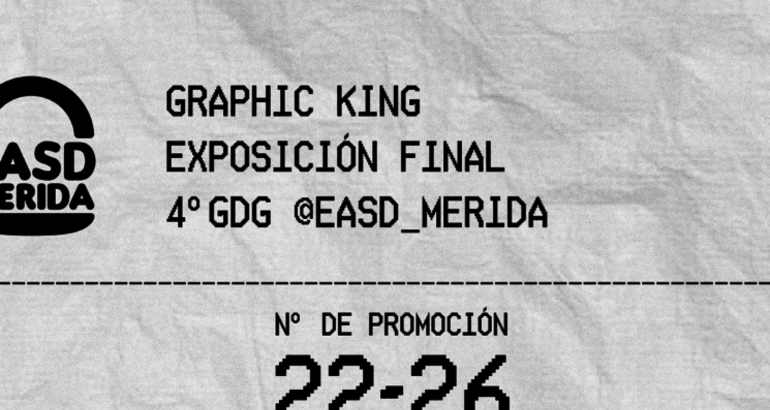 cartelPuede que algún día terminemos en una gran “cadena de comida rápida” —como dicen por ahí—, pero si eso pasa, será sirviendo diseño del bueno. Entre estos menús encontrarás el sabor único de cada persona de la promoción 22–26. Así que elige tu menú y descubre todo lo que se ha estado cocinando estos años. En Graphic King no servimos comida rápida. Servimos creatividad al punto”.
