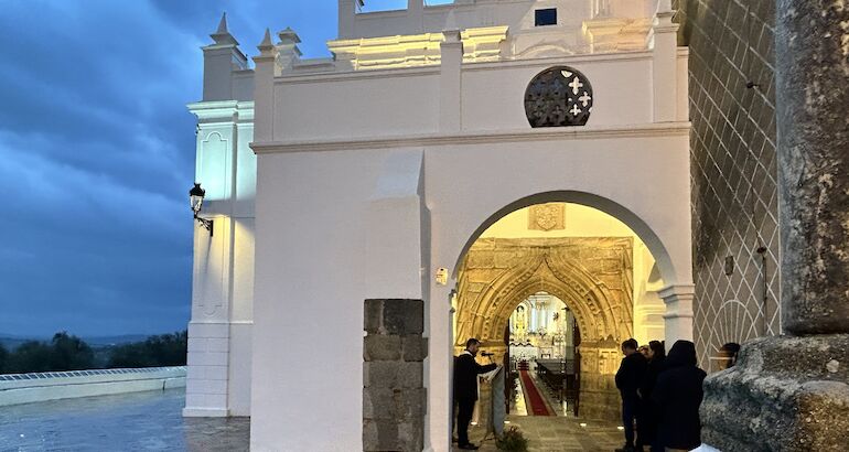 La consejera de Cultura, Turismo, Jóvenes y Deportes, Victoria Bazaga, ha participado en el acto de bendición de la portada gótica del santuario de Nuestra Señora de Gracia, en Oliva de la Frontera, una pieza singular del patrimonio religioso extremeño.