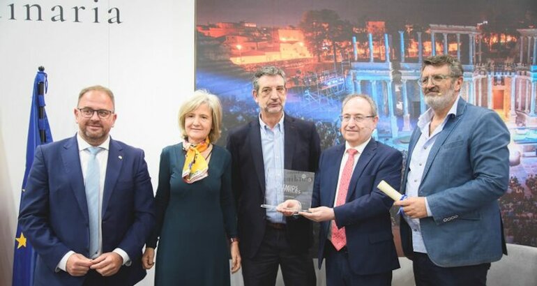 El premio ha sido recogido por el director del Festival Internacional de Teatro Clásico de Mérida, Jesús Cimarro, junto al director gerente, Pedro Blanco, la consejera de Cultura, Turismo, Jóvenes y Deportes de la Junta de Extremadura, Victoria Bazaga Gazapo, y el alcalde de Mérida, Antonio Rodríguez Osuna.