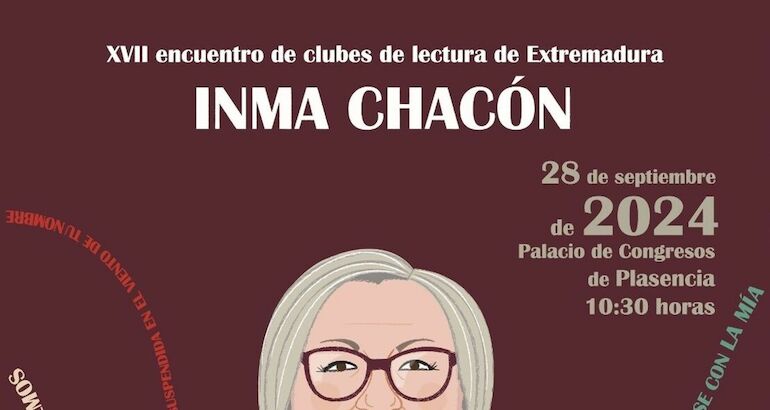 El Plan de Fomento de la Lectura de Extremadura, adscrito a la Dirección General de Bibliotecas, Archivos y Patrimonio Cultural, organizará el día 28 de septiembre el XVII Encuentro de Clubes de Lectura de Extremadura con la escritora segedana Inma Chacón como protagonista.